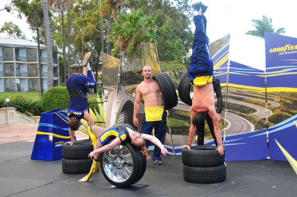 The launch event started at 6pm with an excellent acrobatic display and an introduction to the tyre by Judith Swales - Managing Director and CEO of South Pacific tyres and then onto the press conference. The Goodyear Eagle F1 Assymetric is not just your everyday tyre, it took two years of painstaking research, testing, developing and more research. It involved more than 100 engineers, physicists, chemical experts and tyre evaluation specialists. The objective during development was unambiguous; develop the ultimate tyre for speeds up to 300km/h, and set new standards in cornering capabilities in both dry and wet conditions. To help with this Goodyear developed technologies that are almost alien to other tyres: